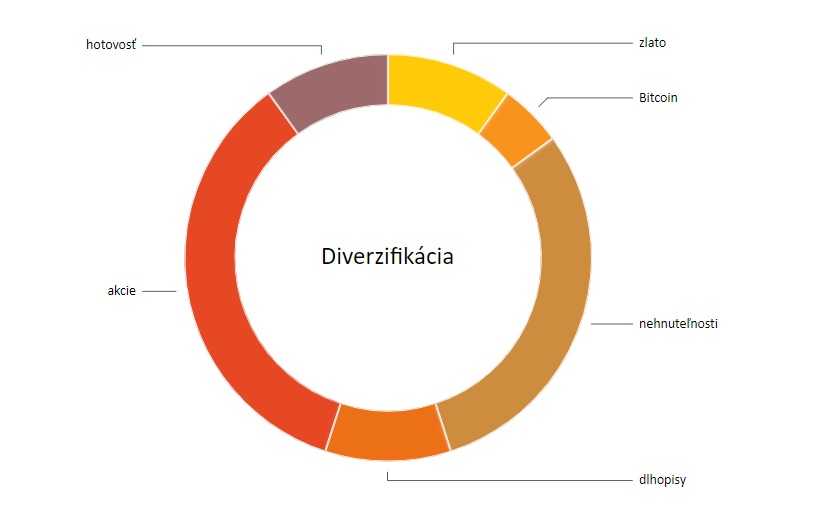 Diverzifikácia je rozloženie rizika medzi viaceré investície. To znamená, že neinvestujem len do akciového trhu, ale napríklad aj do komodít. Takto jednoducho minimalizujem straty. Vďaka rozloženiu rizika nemá môj investovaný majetok strmý priebeh nahor, ale ani nadol.